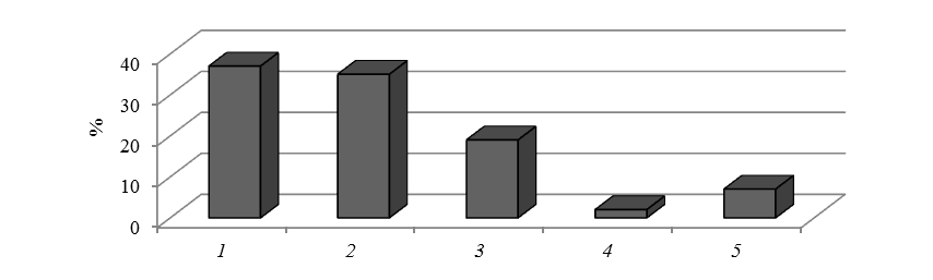1 – North and Southeast Asia; 2 – North America; 3 – Europe; 4 – Russia and the CIS; 5 – other countries