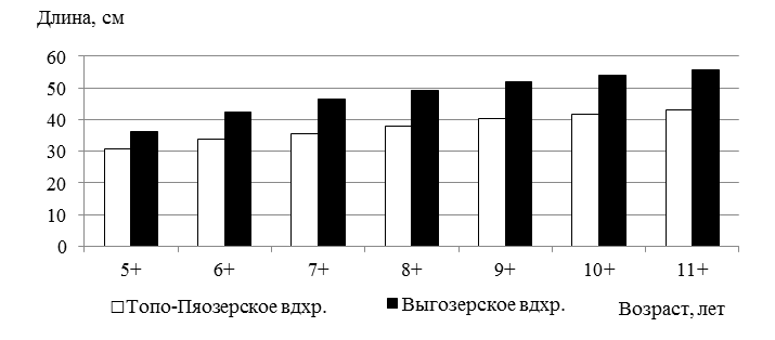 По размерам топо-пяозерский сиг уступает выгозерскому как по длине (АД), так и по массе, что, возможно, связано с более северным расположением первого водоема.