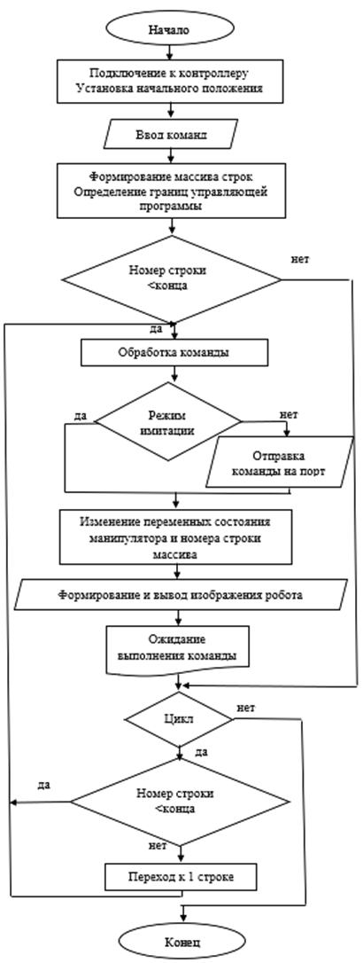 Fig. 3. The algorithm of automatic control of the robotic complex