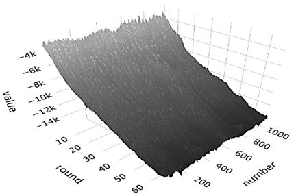 Рис. 4. Трехмерный график сигнала вихретокового преобразователя после обработки методом «медианной полировки»