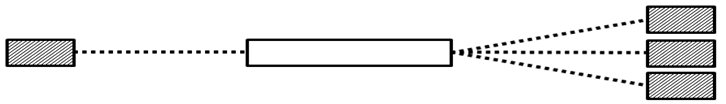 Одним из примеров производства, для которого характерно наличие альтернативных цепочек операций, является кабельная промышленность, а именно производство жгутов проводов. Жгут провода состоит из отдельных проводов, которые могут обрабатываться в определенном порядке. Схематичное изображение жгута представлено на рис. 1: пунктирные линии – отдельные провода, на которые ставится контакт (заштрихованный прямоугольник), нарезка и установка контакта каждого провода может происходить параллельно до момента их объединения.