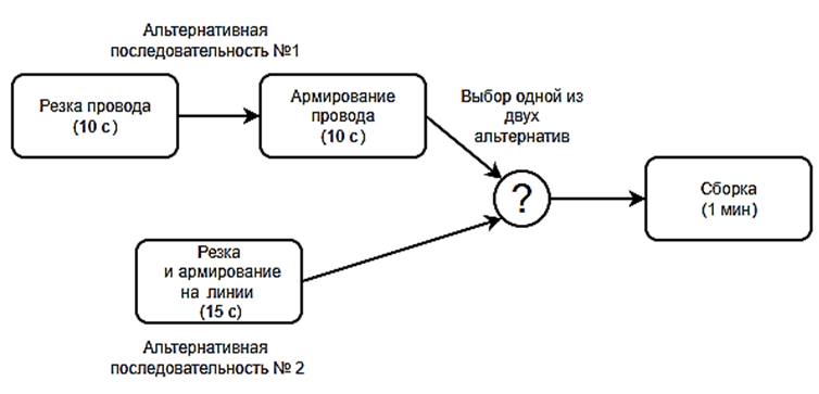 Это означает, что перед выполнением операции «Сборка» нужно принять одно решение – выбрать и запланировать одну из двух заданных операций.