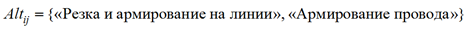, т. е. операция может выполняться на нескольких машинах одновременно (например, основное оборудование и дополнительная оснастка); для описания последовательности альтернативных операций техпроцесса для каждой операции указан набор зависимостей Altij. При этом каждый l-й элемент