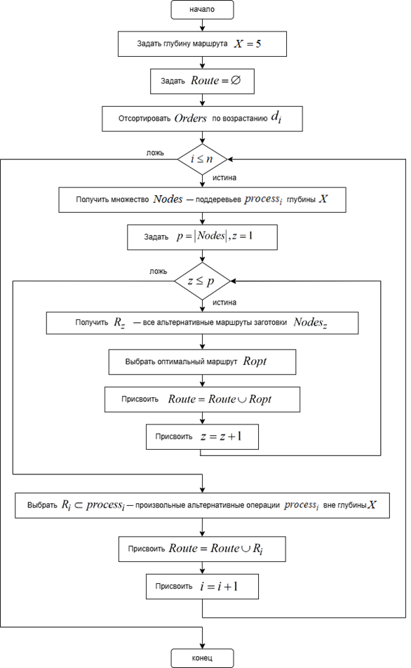 Маршрут Ropt считается оптимальным в том случае, если время окончания последней операции маршрута является минимальным. Операция Oij считается доступной к планированию в том случае, если