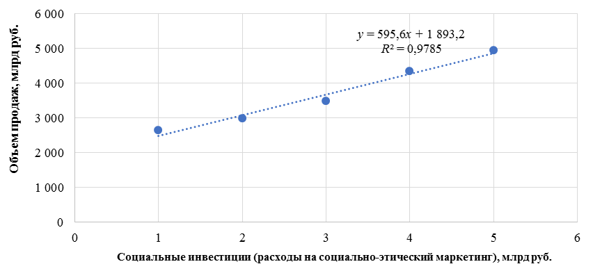Рис. 5. Корреляция величины социальных инвестиций (расходов на социально-этический маркетинг)