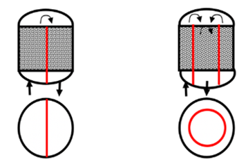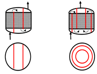 Один из методов конструктивного совершенствования адсорберов – это секционирование адсорбента в аппарате для наиболее эффективной работы адсорбционного слоя [18]. Примеры разделения на секции представлены на рис. 3.
