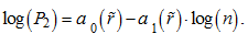 in coordinates of two logarithmic axes (formula (4), fig. 2)