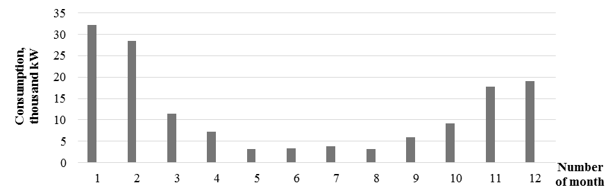 3. A significant increase in electricity consumption is observed in winter, such months as December, January and February, due to weather conditions, shortened daylight hours, increased demand for services.