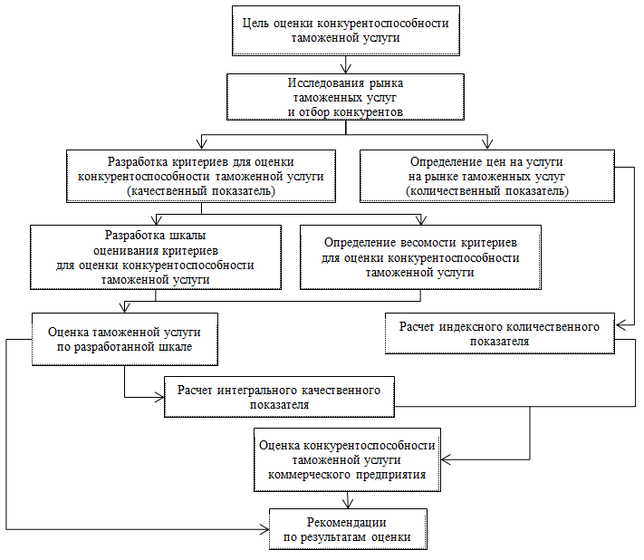 Для оценки конкурентоспособности таможенной услуги был разработан алгоритм, применяемый для коммерческих организаций, предоставляющих таможенные услуги. Данный алгоритм представлен на рисунке.