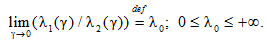 , где – множество допустимых значений переменной γ, представляющее собой интервал или дискретное множество на числовой оси, причем точка 0 есть предельная точка этого множества, поэтому запись «γ → 0» ниже равносильна условию: γ → 0 так, что