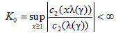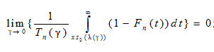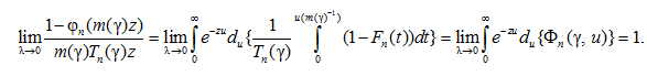 Соотношение (2) и определяет степень регулярности изменения основных характеристик модели в схеме серий, в рамках которой доказывается основной результат. Соотношения (2) и (3) гарантируют существование функций λ1(γ) и λ2(γ) таких, что при согласованном изменении n и γ (напомним, рассматривается схема серий) конечен предел.