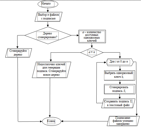 Схема подписи Лампорта состоит из алгоритмов генерации, подписания и верификации [6]. Результатом выполнения алгоритма генерации ключей является пара ключей (открытый ключ и закрытый ключ).