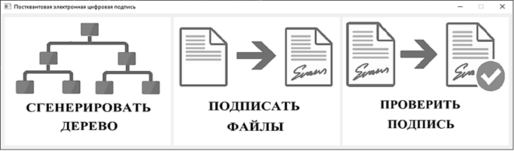 На основе разработанной модификации алгоритма подписи Меркла реализована система постквантовой электронной подписи, которая позволяет пользователю выполнять генерацию деревьев Меркла, подписывать файлы и осуществлять проверку подписи.