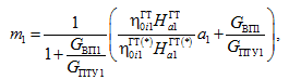 где m1 – увеличение расхода питательной воды при маневре ГЭУ за пределом ОМ (при закрытом КТ).