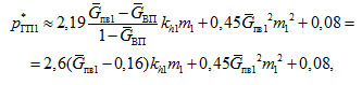 При полном относительном открытии КТ (ḠКТ = 1) и ПК (ḠПК = 1) устанавливается максимальное давление пара в ГП (
