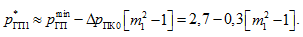 МПа. В данных условиях кривая 3 моделирует изменение давления на протяжении всей питательной магистрали. Падение давления на ДК здесь изменяется в соответствии со статической характеристикой регулирования питательной установки при сохранении перепада давления на ПК.