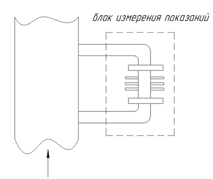 Рис. 4. Схема взаимного расположения трубопровода и системы измерений обводненности потока