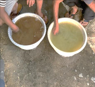 В период между второй инъекцией и наступлением половой зрелости готовили разбавленный ананасовый сок (разбавление 1 : 50 по объему), который использовали для промывки икры. Также был приготовлен раствор на основе чайных листьев (50 г чайных листьев на 100 л воды), который использовался для укрепления стенок икры в процессе обесклеивания.