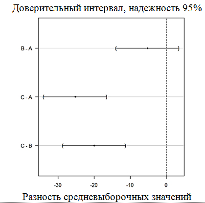 Результаты этого анализа с учетом поправки на множественные сравнения при использовании критерия Тьюки приведены на рис. 5.