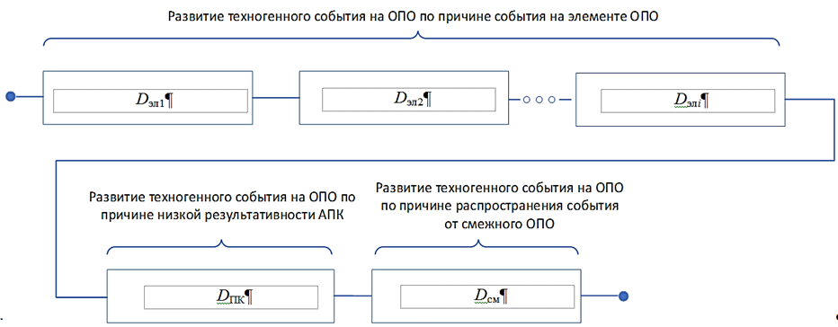 Рис. 4. Блок-схема модели надежности ОПО в зависимости от надежности его отдельных элементов,