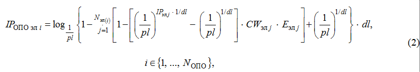 – множество элементов ОПО для каждого обсчитываемого ОПО; 1/pl – основание логарифма, где pl = 10; dl – цена деления логарифмической шкалы интегральных показателей