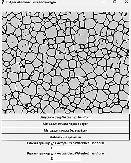 Разработка специализированного ПО становится ключевым этапом в решении задачи автоматизации анализа микроструктуры металлических материалов. Для повышения точности вычисления количества зерен, обнаружения неметаллических включений и значительного увеличения скорости обработки микрофотографий необходимо создать инструмент, который сможет интегрировать современные методы цифровой обработки изображений. Разработанный прототип реализован на языке программирования Python с использованием библиотек OpenCV, NumPy и Scikit-Image, обеспечивает широкие возможности для дальнейшего внедрения адаптивных алгоритмов машинного обучения для повышения точности анализа. Эти инструменты позволяют эффективно решать задачи, связанные с анализом изображений, включая их предварительную обработку, сегментацию и количественный анализ структурных элементов [8, 9].
