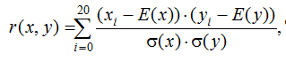 коэффициента корреляционной сцепленности r анализируемых данных и нормированного значения