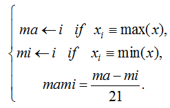 где i(min) – индекс (номер) минимального значения; i(max) – индекс (номер) максимального значения.