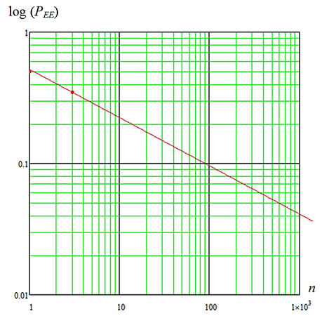 Рис. 4. Предсказание снижения вероятности ошибок первого и второго рода P1 = P2 = PEE