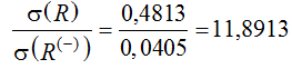 Если знак показателя вносит свою собственную существенную нестационарность, то разделение классической нестационарности на 2 компонента должно приводить к следующим соотношениям: σ(R(+)) ≈ σ(R(–)) < σ(R). Полученные расчетные значения σ(R(+)) = 0,0488, σ(R(–)) = 0,0405, σ(R) = 0,4813 для нашей выборки подтверждают этот факт.