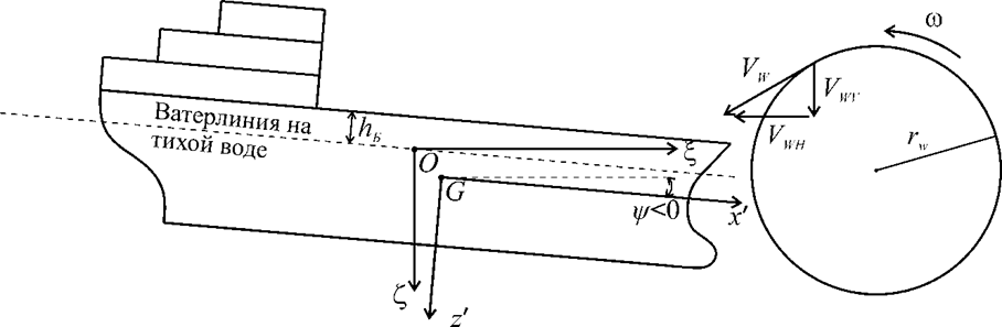 от угла дифферента при зарывании носовой оконечности в волну становится нелинейной. Кроме того, из-за наличия в этих уравнениях членов, содержащих PN, в них входят