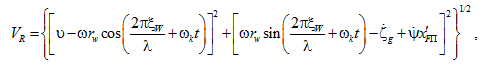Процедура определения результирующей скорости обтекания VR носовой оконечности представлена в [3, 4], при этом итоговое выражение имеет вид: