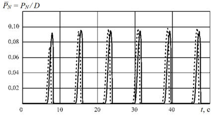 Рис. 5. Сопоставление результатов расчета с использованием предложенной (сплошные линии) и упрощенной (пунктирные линии) методики: