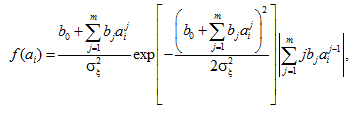 Согласно [24], неизвестные коэффициенты bj определяются с использованием вероятностного подхода из условия минимума дисперсии разности. После определения указанных коэффициентов плотность распределения амплитуды выходного процесса представляется в виде: