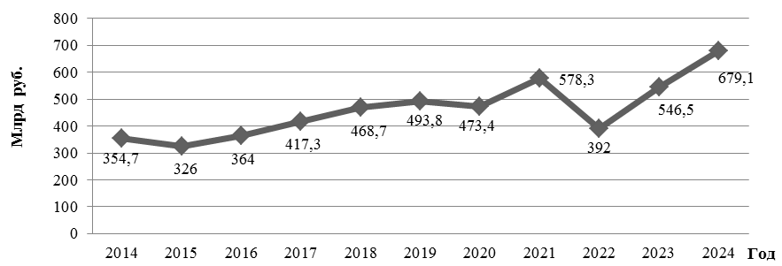 Рис. 10. Динамика российского рекламного рынка (2014–2024 гг.) [9, 10]