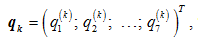Показатель степени Т означает, что вектор-строка транспонируется в вектор-столбец. На начальной итерации выбирается вектор-столбец q0 = (1, 0, 0, 0, 0, 0, 0)T, затем итерационный процесс повторяется для k = 1, 2, … до достижения заданной точности вычисления λmax:
