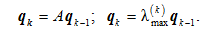 Степенной метод на основе итераций достаточно надежно определяет λmax. Обозначим собственные векторы-столбцы на k-й итерации: