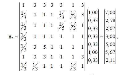 Обработка результатов анкеты (см. табл. 1) производилась следующим образом – по суждениям эксперта построена матрица А: