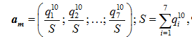 wТ = (0,262; 0,148; 0,087; 0,095; 0,115; 0,223; 0,070).