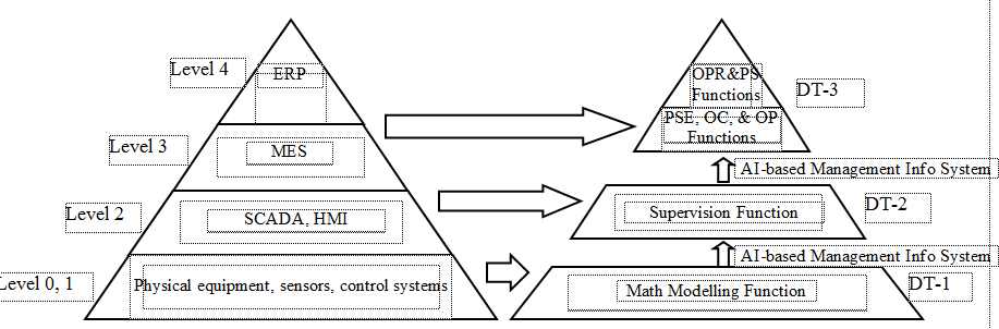 Применение цифровых систем управления привело не только к увеличению количества выполняемых функций, но и к формированию строгой иерархии и принципов построения АСУ ТП общепромышленного назначения [1]. Именно цифровизация АСУ ТП позволила начать осуществление концептуальной технологии цифровых двойников [2] и, как следствие, концепции цифровых фабрик [3, 4].