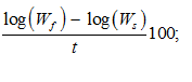 where Ws and Wf are the mass of fish at the beginning and at the end of the experiment, g; t is the duration of the experiment, day.