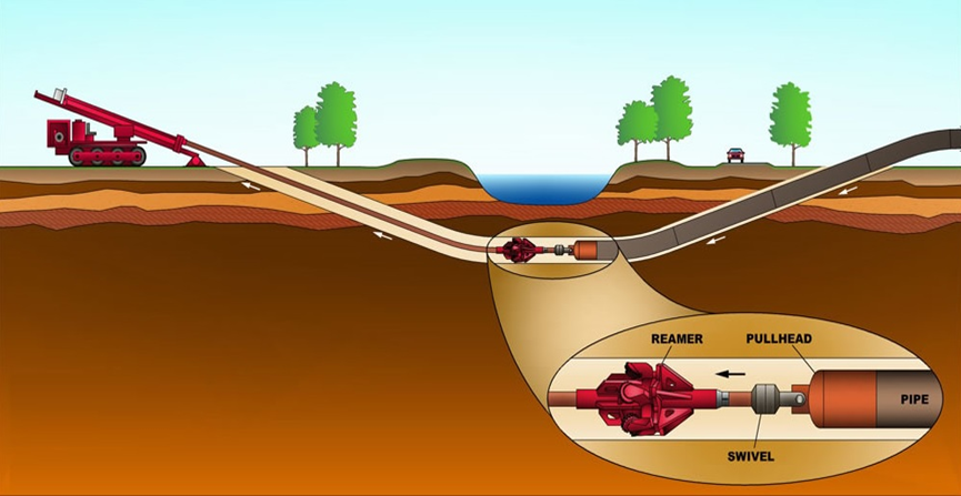 Горизонтальное бурение также снижает воздействие на окружающую среду. Процесс позволяет сократить количество буровых площадок, необходимых для доступа к углеводородам, поскольку одна горизонтальная скважина может покрывать большие участки земли. Это особенно важно в экологически чувствительных районах. На рис. 1 представлена технология горизонтального направленного бурения [1].
