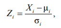 где μi – среднее значение параметра; σi – стандартное отклонение данных в этих же единицах.