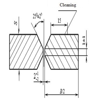 Welding of the plates was carried out using manual arc welding with a consumable electrode, performed in the flat position with X-shaped edge preparation. Edge preparation was done according to connection type C25 in accordance with ISS 5264-80 [12]. Welding was carried out using electrodes of category 3Y40NNN following optimal modes for this type of connection (Fig. 1).