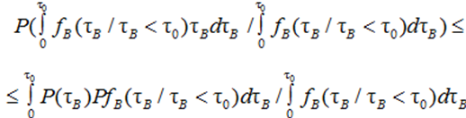 Further, it can be shown that for any distribution law FB(t) the relative positions of the functions P[0, mτ0] and P*[0, mτ0] with respect to М[τВ] can be determined. For this purpose, it is sufficient to use Jensen's integral formula [4], according to which the following inequality is valid: