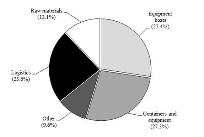 of the cost of equipment and site preparation expenses [9]. The basic configuration of the shipyard (14 containers) will require an investment of 42 790 000-114 920 000 rubles (Table 2). Within the framework of the technical and economic justification, the main components influencing CAPEX were analyzed (Fig. 2).