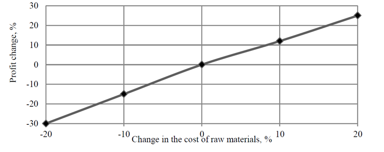 Sensitivity analysis revealed that the most sensitive parameters to changes in profitability are the cost of raw materials (±20%), logistics costs (which significantly increase annual operating expenses), and productivity (the volume of boat output) (Fig. 3). A financial planning model was constructed to reflect changes in key indicators with variations in crucial variables.