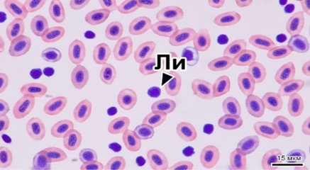 Не – нейтрофил; Тр – тромбоцит; Ли – лимфоцит. Шкала масштаба 15 мкм