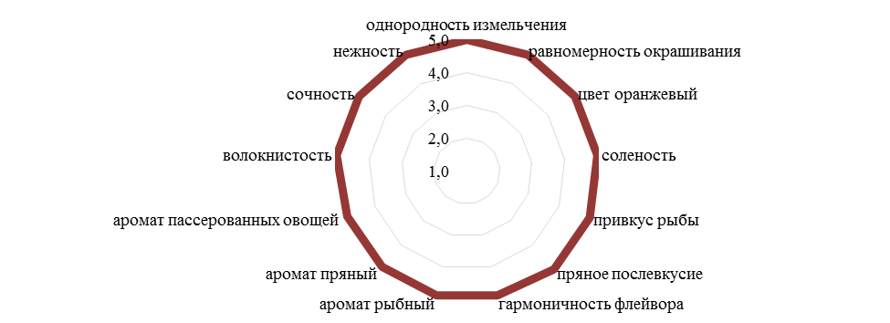 Таким образом, органолептический анализ в рамках ассортимента пастообразной рыбной продукции и риетов на основе вторичных ресурсов осетровых объектов товарной аквакультуры рационально проводить на основе комплексного подхода с использованием разработанных инструментов с целью формирования заданных потребительских свойств и показателей.