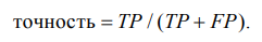 Этот показатель может быть интерпретирован как измерение шума в предсказаниях классификатора, – другими словами, он показывает, с какой вероятностью наши положительные предсказания правильны.